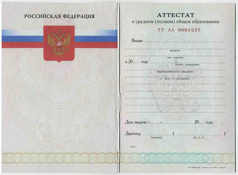 Аттестата о среднем (полном) общем образовании с приложением, выдается 2007 года