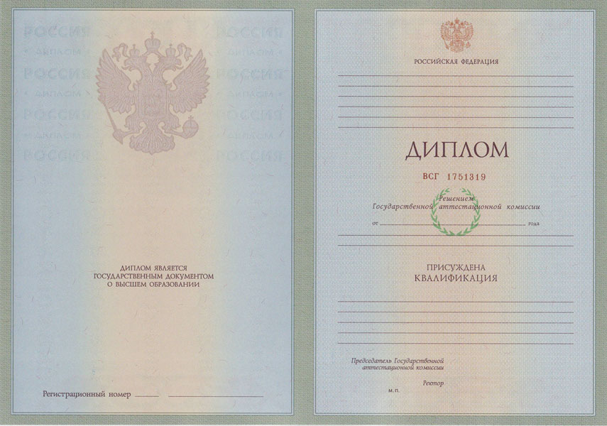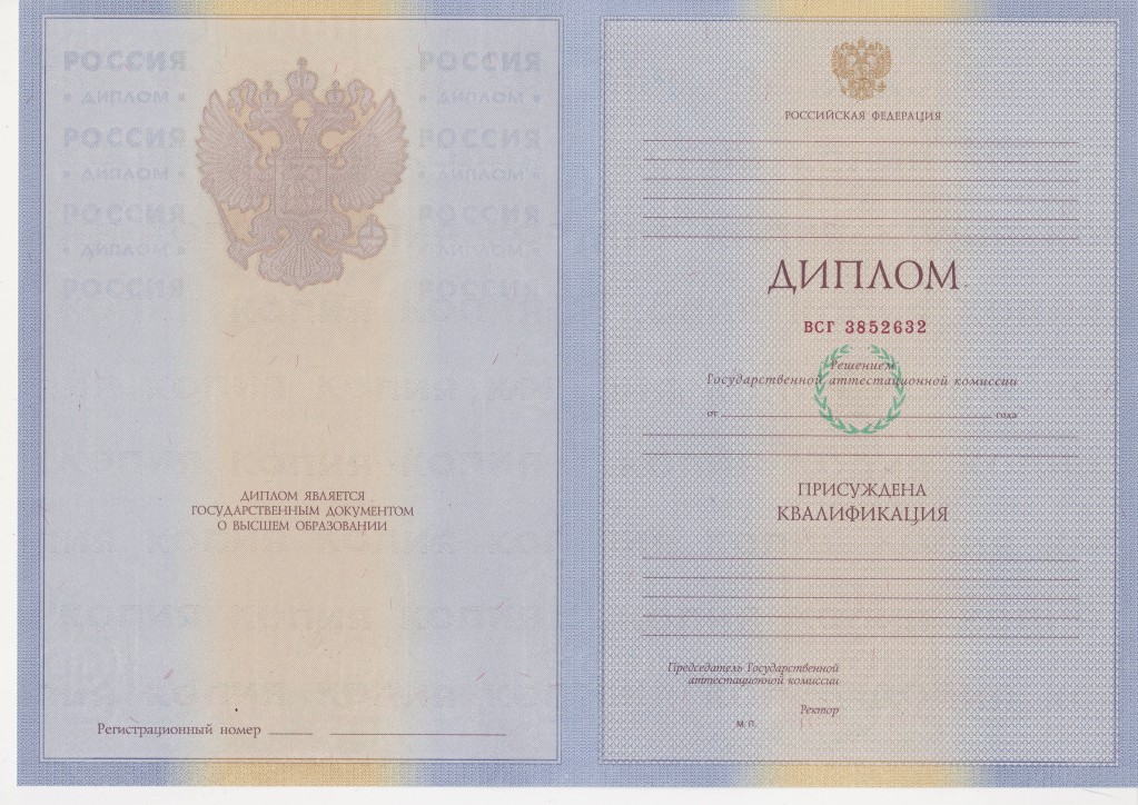 Диплома ВУЗа с приложением, выдался с 2004 по 2009 год